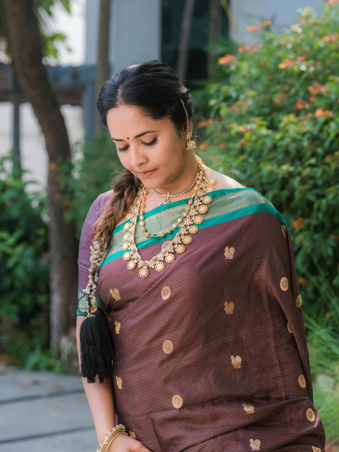 Anasuya recently shared a calm and elegant Instagram photo wearing a traditional saree, captioned “Soft in presence… Fierce in purpose.” Styled by Rishi Chowdary, her look included outfits from The GV Mall and Littlesunshine The Label, with jewellery by Bcos Its Silver. She also wished her followers a peaceful good night.