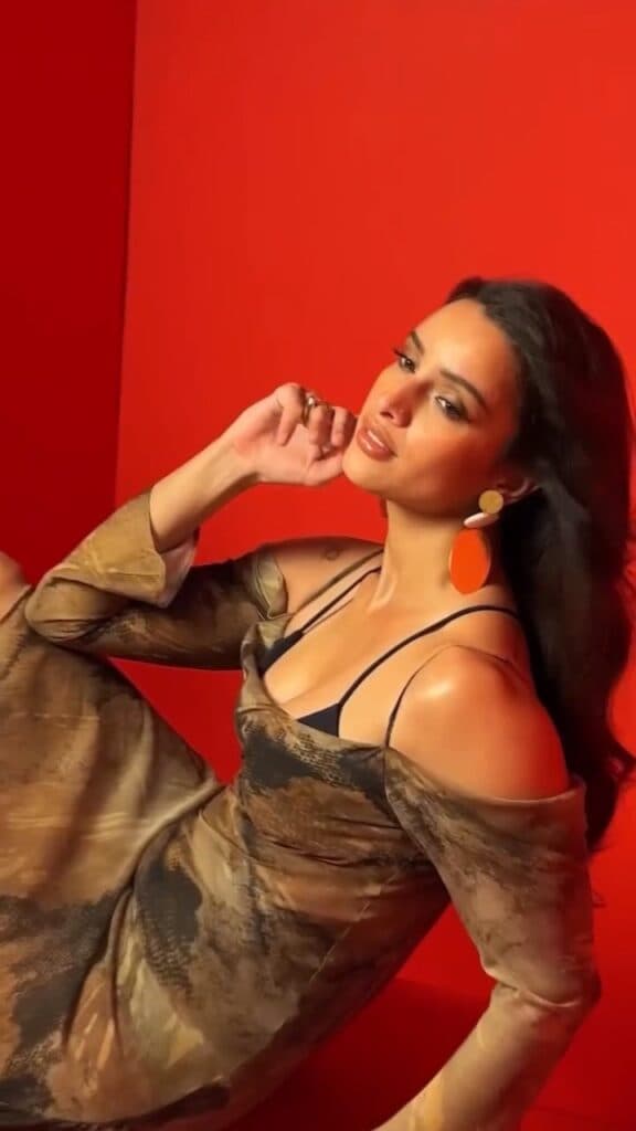 Triptii Dimri’s latest Filmfare photoshoot is making waves. She donned a sheer, earthy-toned dress with spaghetti straps, striking a confident pose against a bright red backdrop. Her sleek hair, minimal accessories, and warm makeup created a look that was simple yet impactful. The styling gave her a bold, contemporary vibe without going overboard.