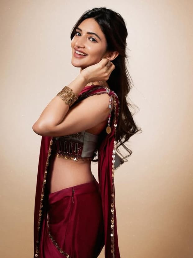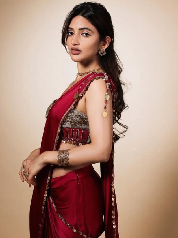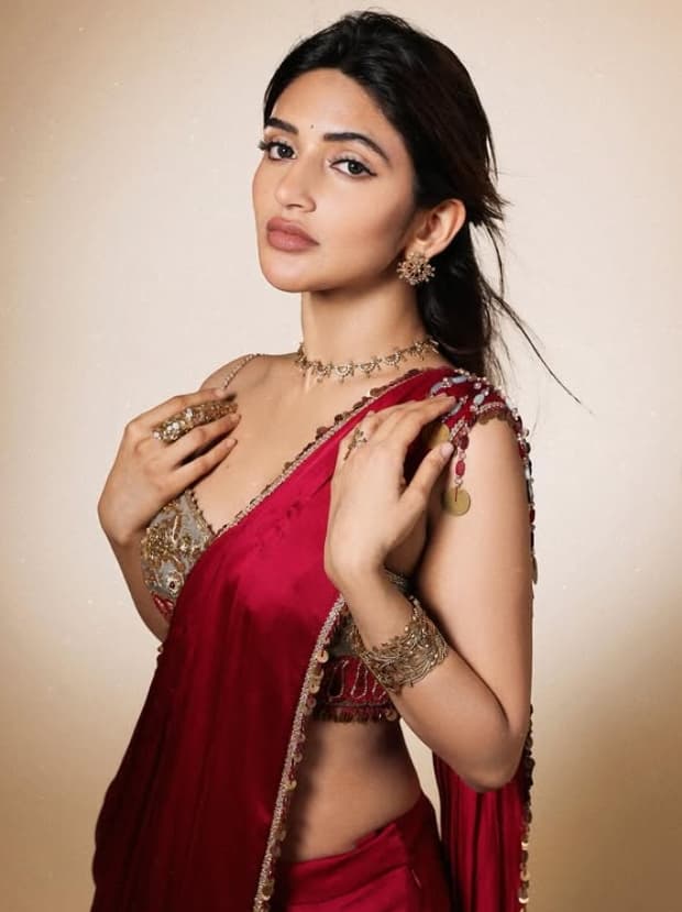 Wearing a red half saree and a sleeveless designer blouse, Sreeleela makes a stunning entrance. Her loose hair softens every picture. The images begin simply and warmly, allowing her inherent charm to shine through. Her poses become more sensual as the shoot goes on, but the camera stays respectfully away, emphasizing her posture, nuanced facial expressions, and quiet confidence. Her serene demeanor contrasts beautifully with the red ripples created by the fabric's gentle movement around her. She transitions towards the end into calmer, slower poses that seem organic rather than staged. Her controlled stillness, the red color scheme, and the graceful way her hair falls all combine to create a calm, cinematic ambiance that lends the entire series a timeless quality.