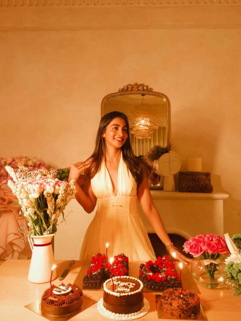 Pooja Hegde turned 35 this week and chose to celebrate her birthday in the most warm and simple way. Dressed in a soft white gown, she looked radiant and genuinely happy while cutting her cake. On Instagram, she shared a few lovely pictures with the caption, “A birthday filled with laughter, goofiness, peace, and a whole lot of love.”