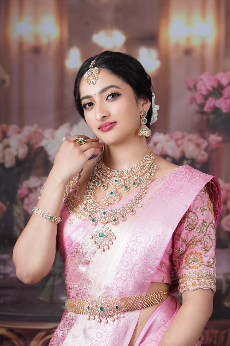 Jaanvi Gattamaneni turns heads with her stunning blend of tradition and modernity. Draped in shades of pink, pastel blue, and gold, she exudes effortless grace in every look.