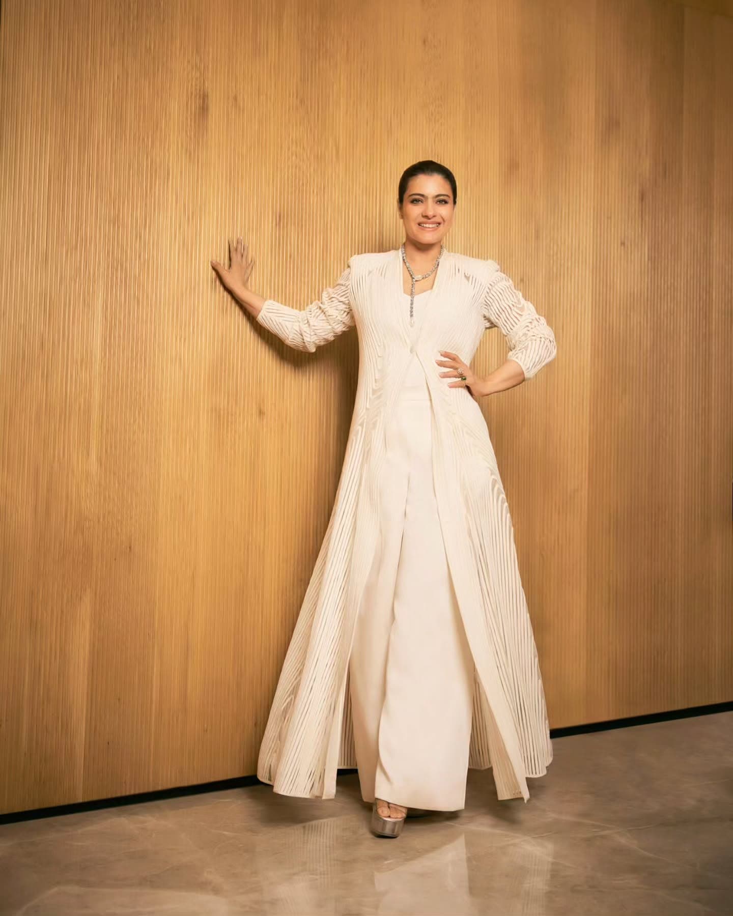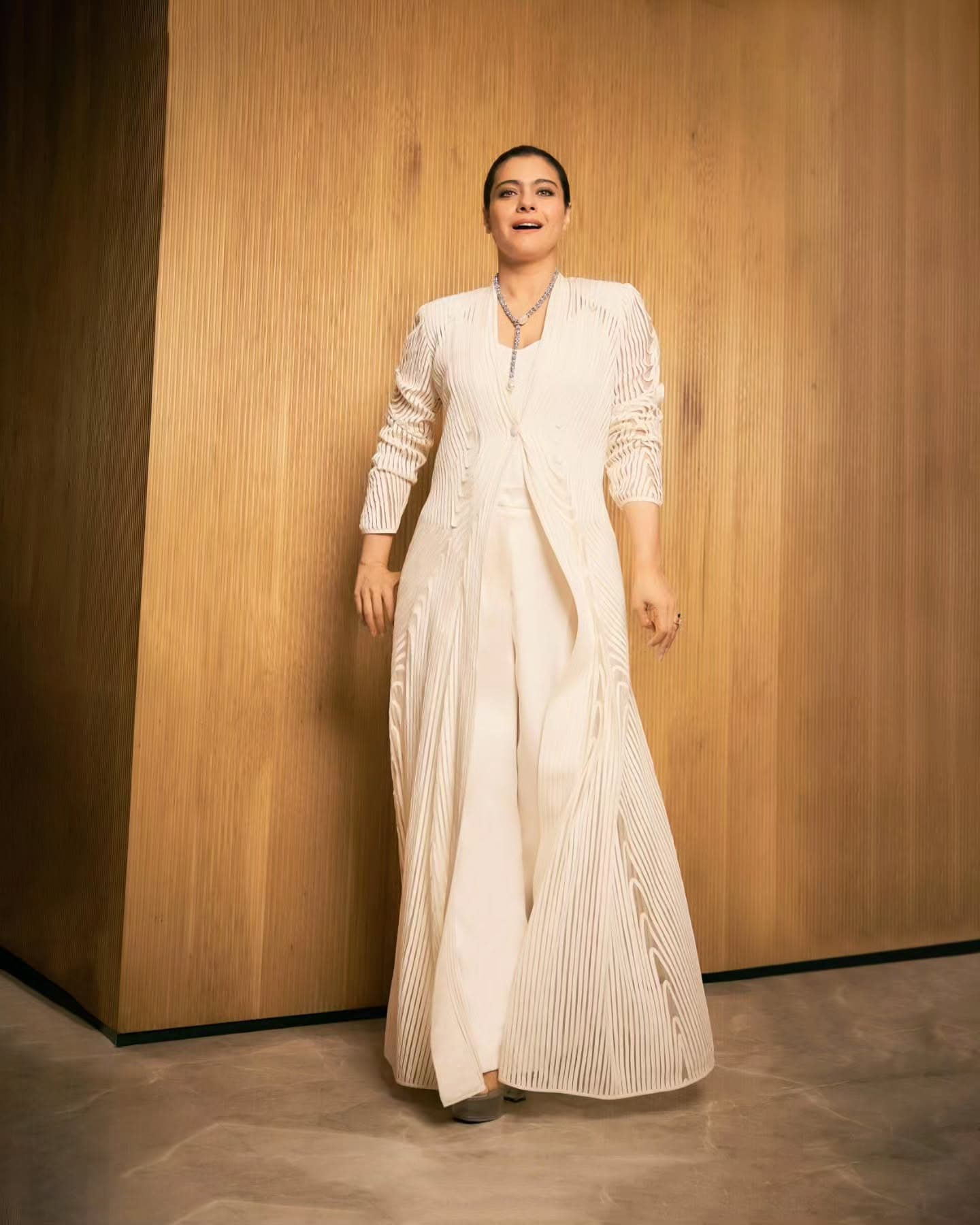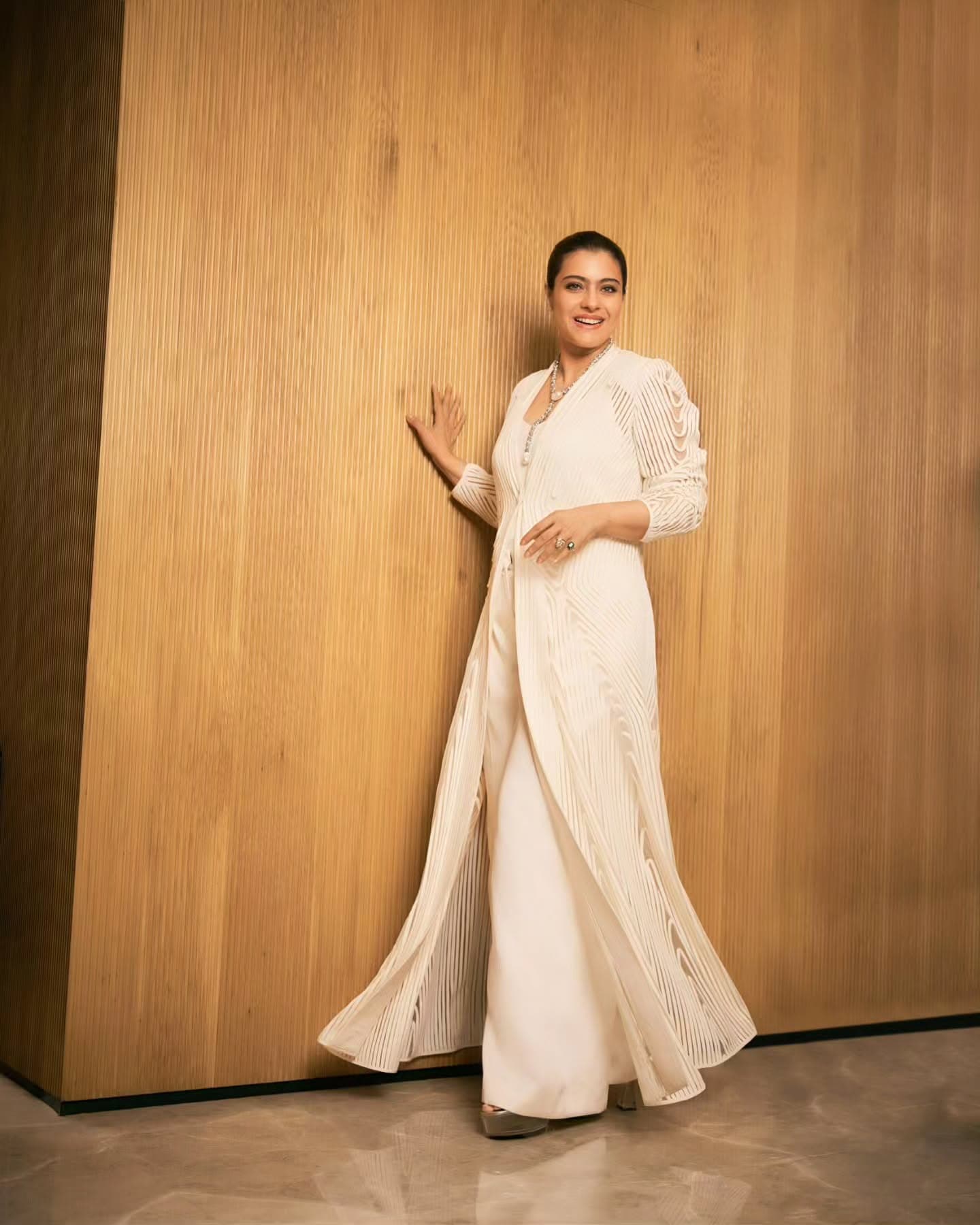 Kajol devgan stuns in a serene ivory ensemble, radiating effortless sophistication and poise. The minimalist styling paired with subtle jewellery highlights her timeless beauty. With quiet confidence and classic charm, she proves elegance never goes out of style.