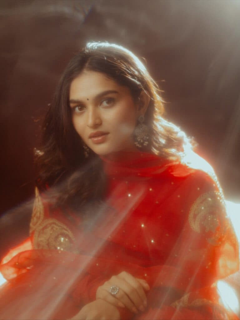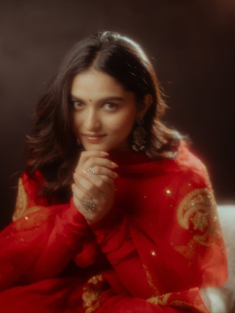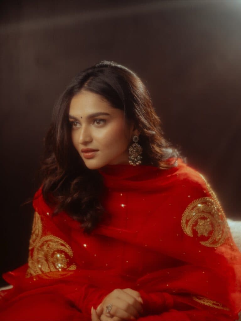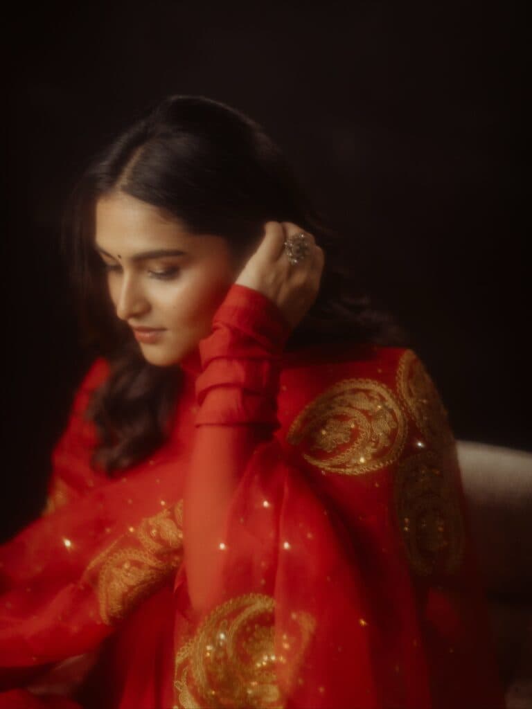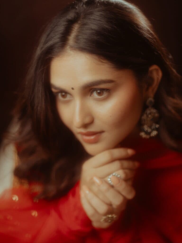 But her new pictures immediately changed the tone. She appears gentle but self-assured while wearing a deep red outfit; it's as if she's taking a deep breath in the middle of the chaos. Fans swiftly started sharing the photos, describing her as dreamy and serene due to the warm glow and simple styling.