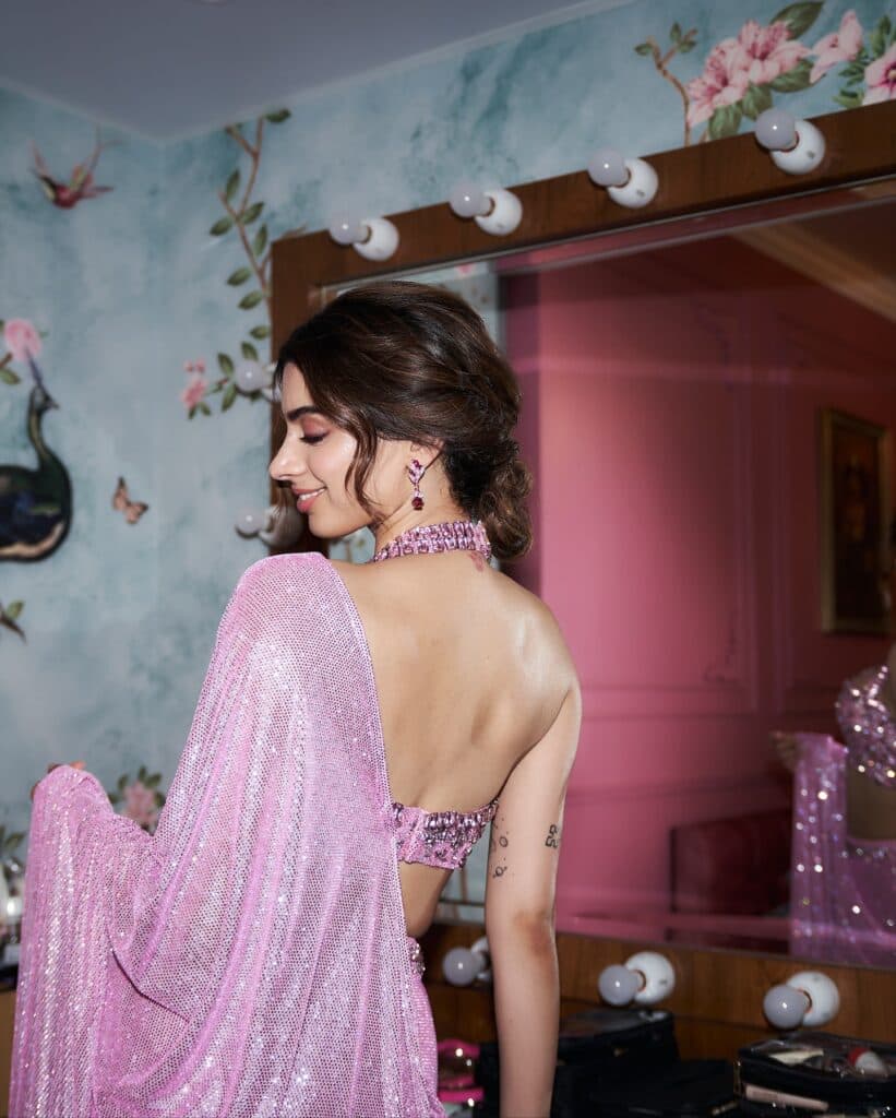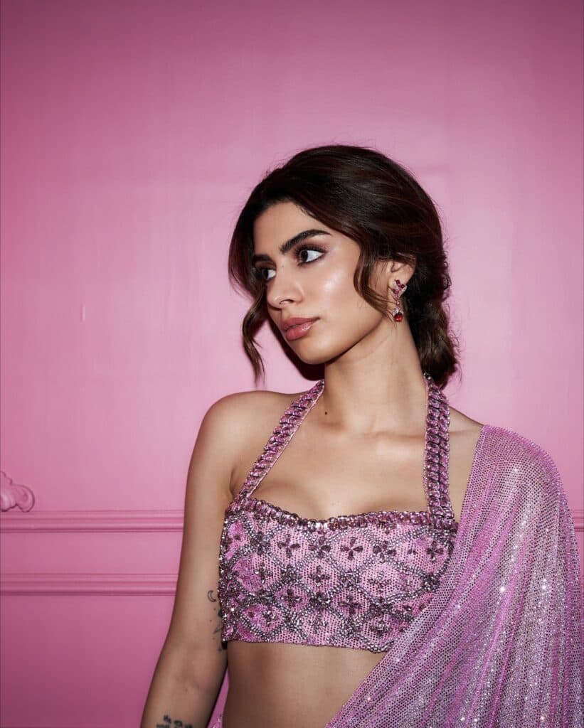 Khushi Kapoor lit up Instagram with her latest photos, dazzling in a glittery pink saree paired with a halter blouse. With her messy bun, soft gaze, and confident smile, she struck the perfect balance between cute and bold. The effortless charm of her poses and lighting made the pictures feel natural and captivating, earning her endless pink hearts from fans who called her the next big fashion girl. While her box-office journey hasn’t fully taken off yet, Khushi seems unfazed currently shooting for Mom 2, she’s embracing her own glow, confidence, and charm without trying too hard to prove anything.