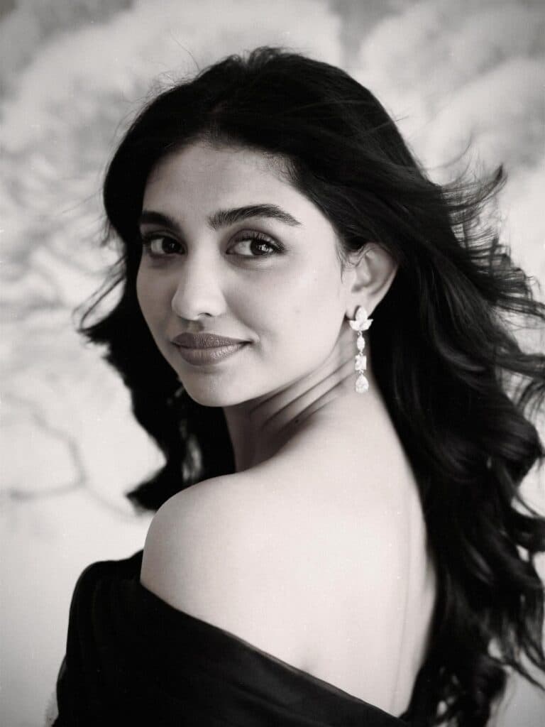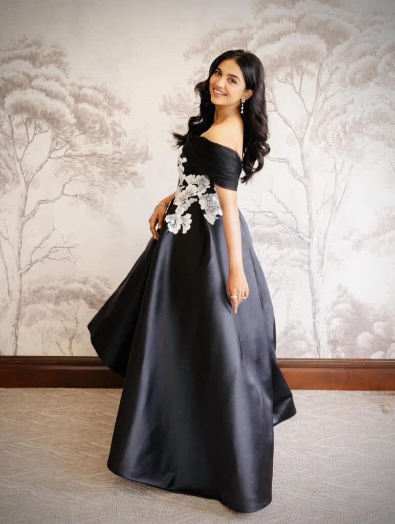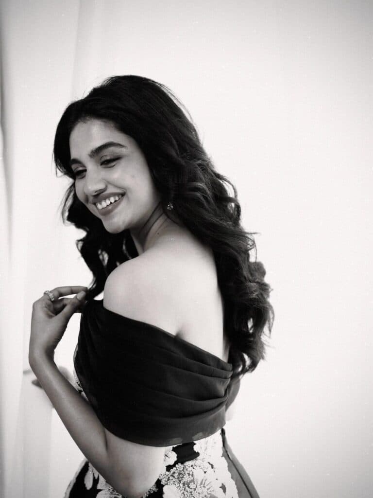 Mamitha Baiju mesmerizes with her natural charm in a stunning black outfit. Her radiant smile and free-spirited pose elevate the look beautifully. A seamless blend of elegance, simplicity, and modern glamour shines through.