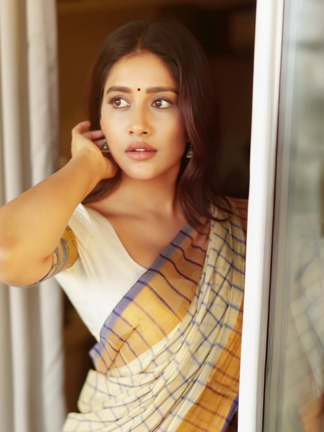 Blending natural beauty with confidence in a traditional saree, Nabha Natesh turns every gaze her way with quiet grace and timeless elegance.