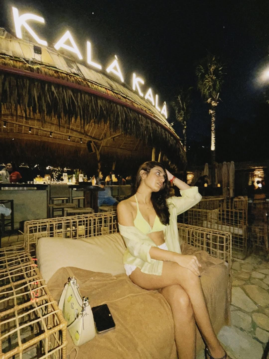 At Vietnam’s Kala Kala Beach Club, Priya Prakash Varrier steals the spotlight effortlessly in a yellow three-piece set. Her loose hair, natural pose and the cute little tattoo peeking through make her look even more spontaneous and special.