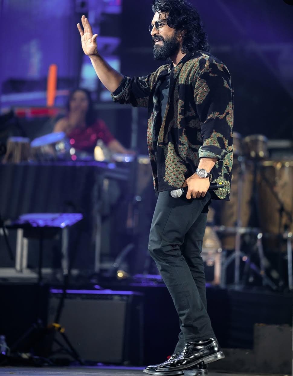 Ram Charan’s presence added immense energy and star power to an already spectacular event. As A.R. Rahman performed his iconic numbers, the crowd’s enthusiasm doubled with Charan cheering from the sidelines and soaking in the musical magic. It was truly a night where cinema met music, with two legends sharing the same spotlight, making Hyderabad’s evening one to remember.