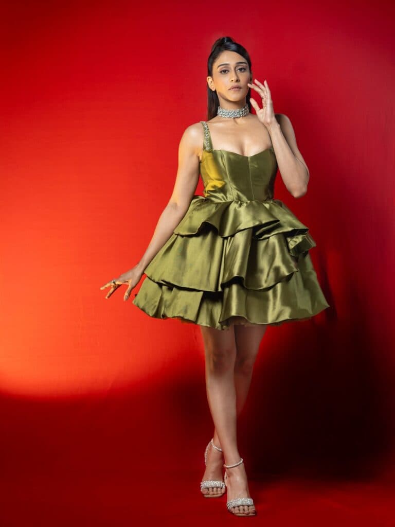 Regina Cassandra, currently busy judging Dhee 20 on ETV Telugu, caught everyone’s attention with a bright green mini frock.