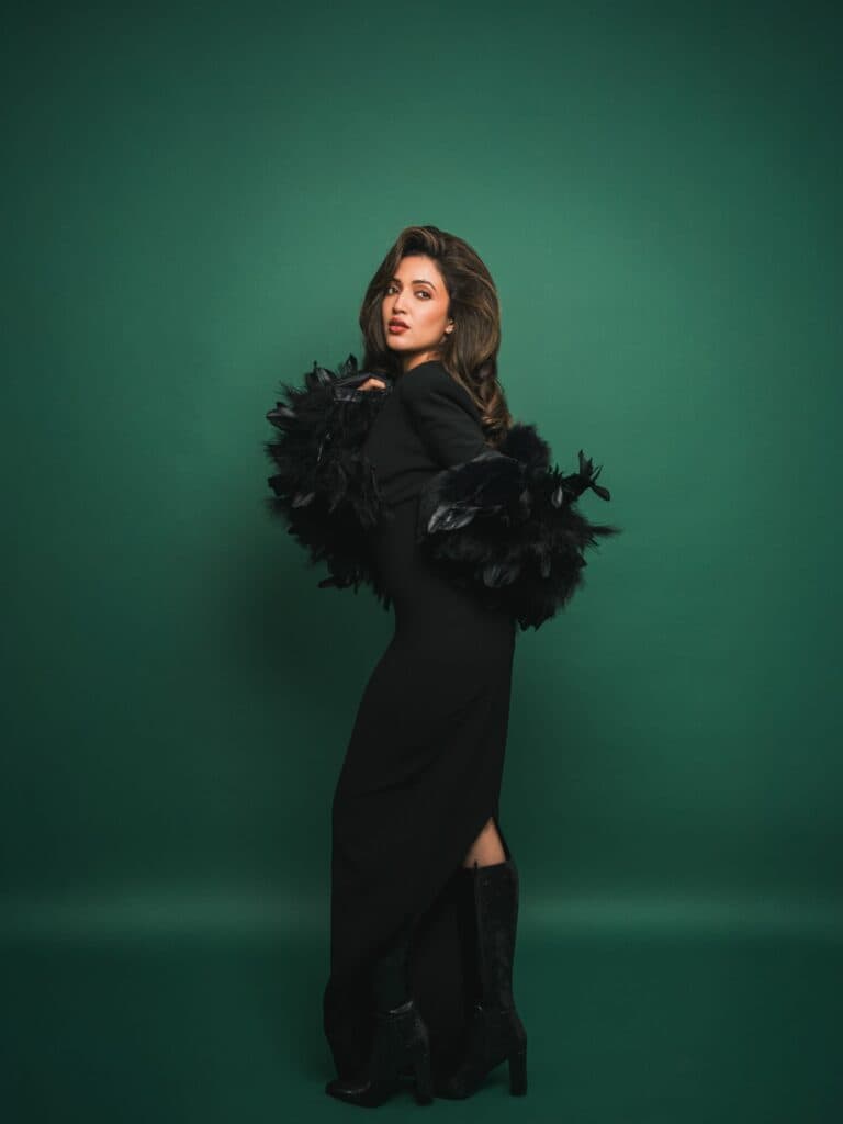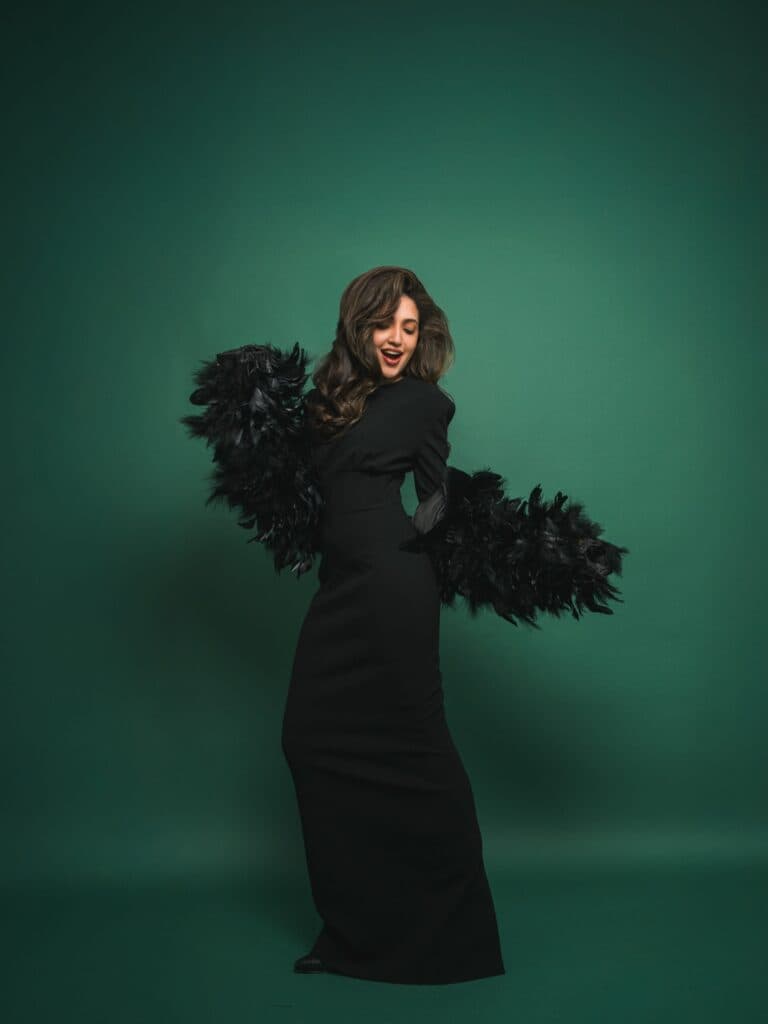 Neha Shetty turned heads in a classic black retro-inspired outfit that radiated understated elegance. Her calm expression and vintage styling brought a timeless charm to the festive mood.