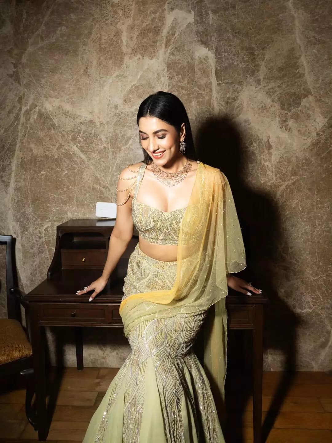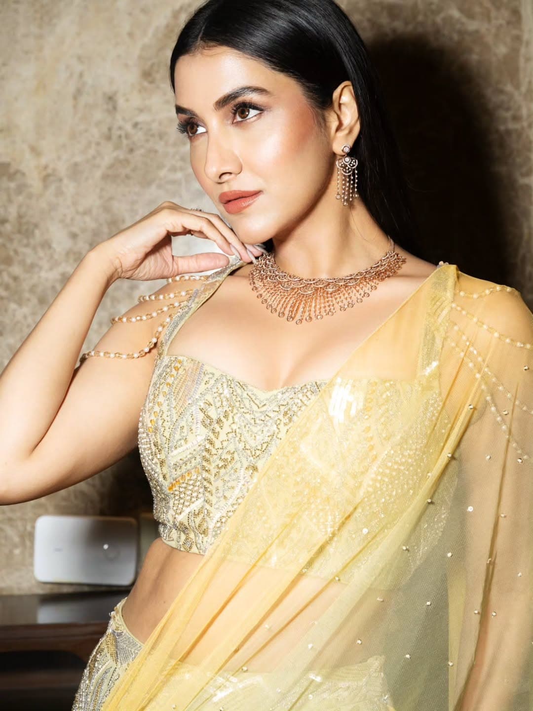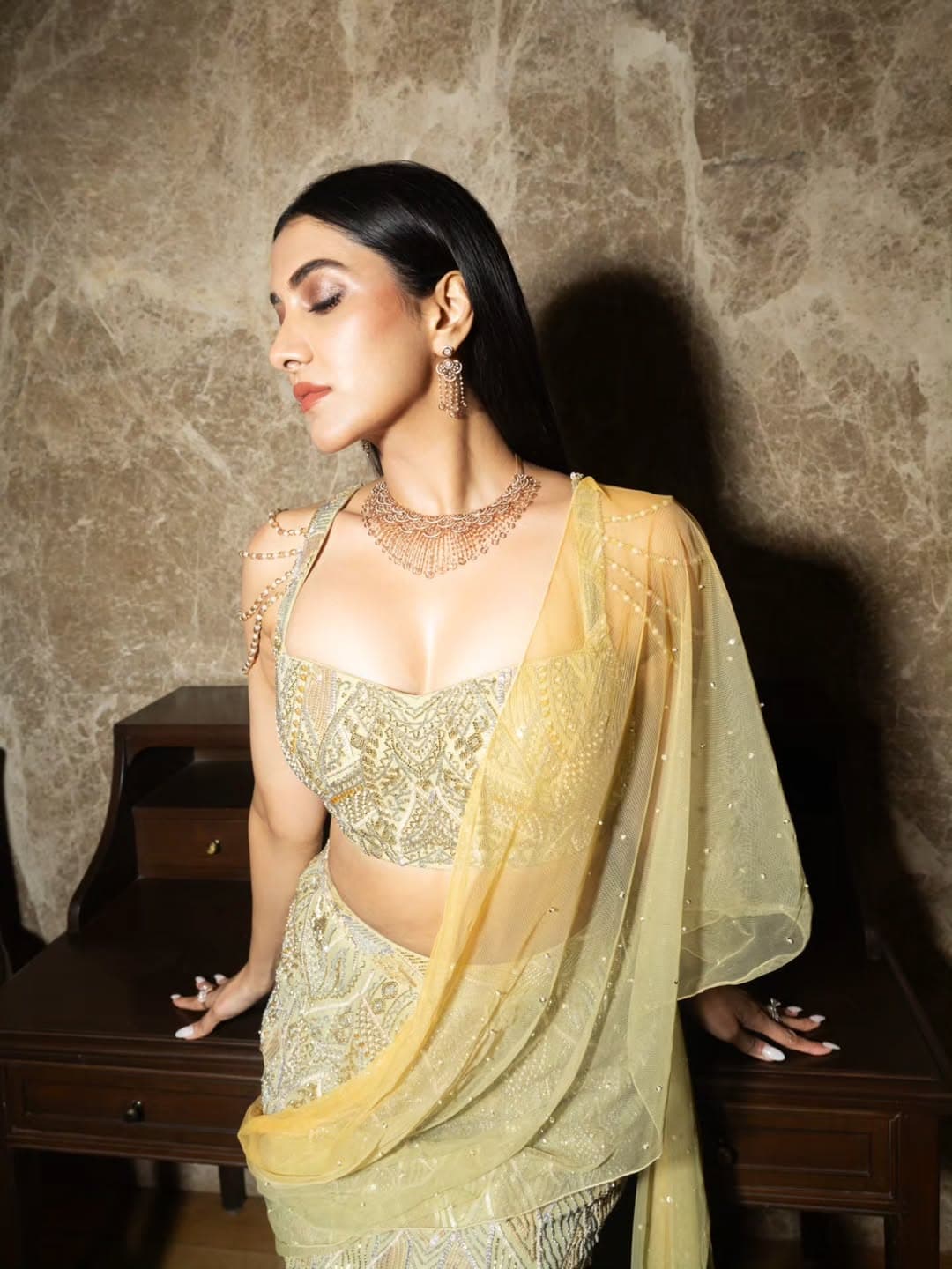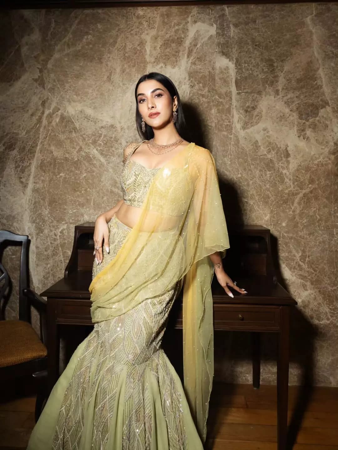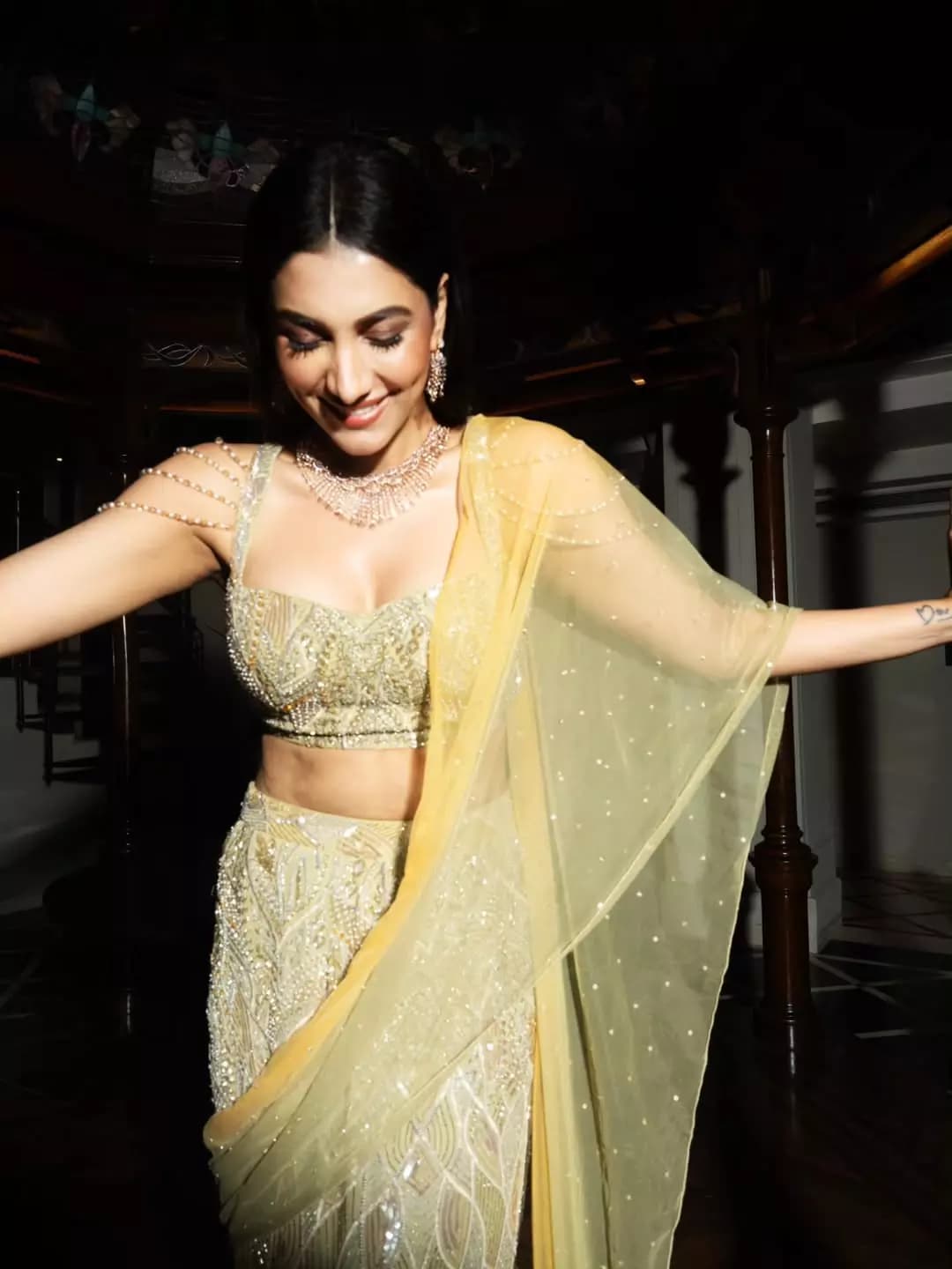 Rukmini Maitra looked effortlessly graceful in a soft gold and pastel-toned traditional ensemble that reflected understated elegance. Carrying the look with calm confidence, she perfectly embodied a woman dancing to her own rhythm and celebrating her individuality.