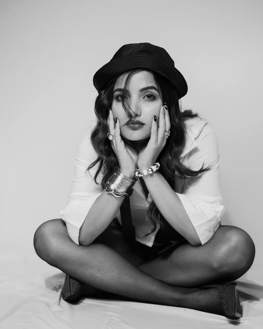 Siri Hanmanth has quickly grown into one of Telugu entertainment’s most adored young stars. Her latest Instagram post shows her in a chic white shirt, black shorts, stockings, and heels—styled by Greeshma Krishna K, shot by Manoj Gangula, with makeup by VJ Beauty Makeup, hair by Suresh, and jewellery from Ameya by Gak. She captioned the look “High Vibe Aura,” and it fits her perfectly. Though many know her from her YouTube channel Hey Siri, her journey began back in 2014 as a reporter for Yone TV.