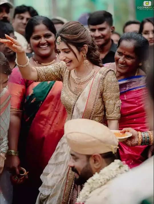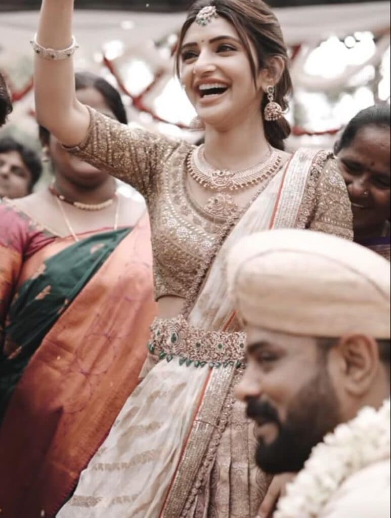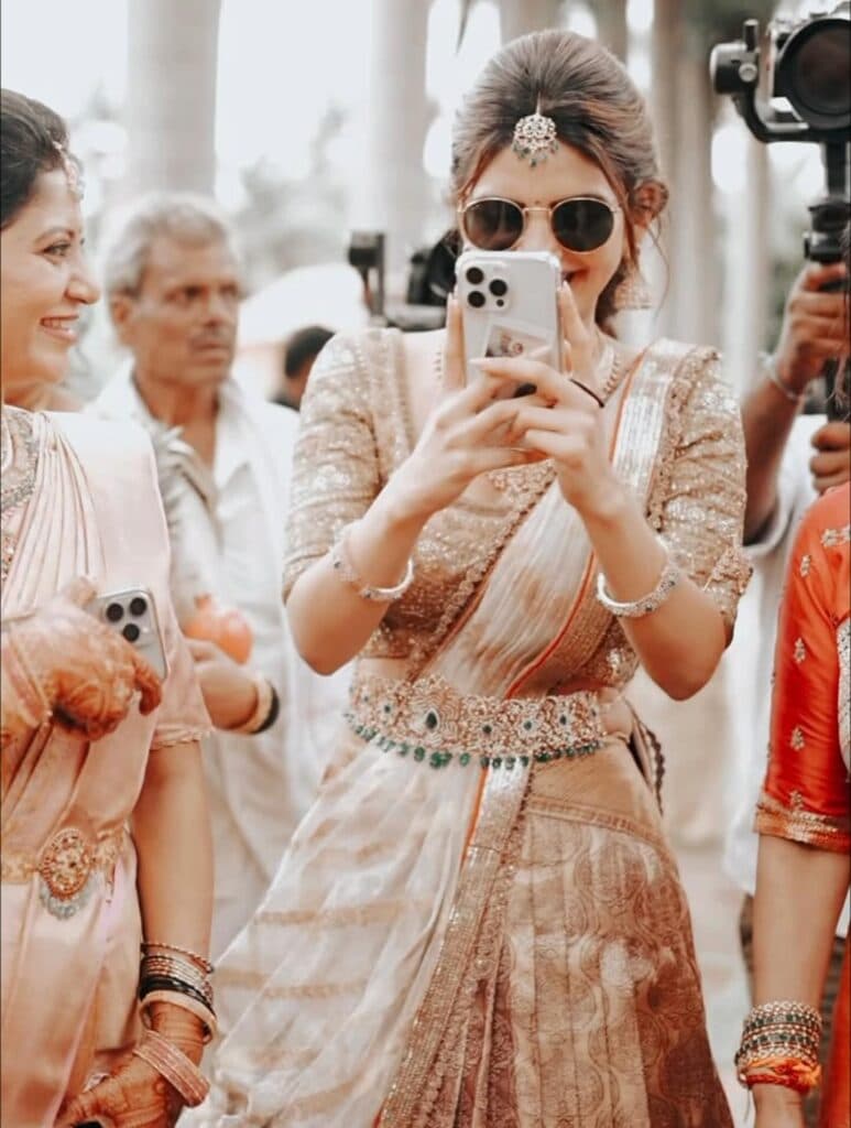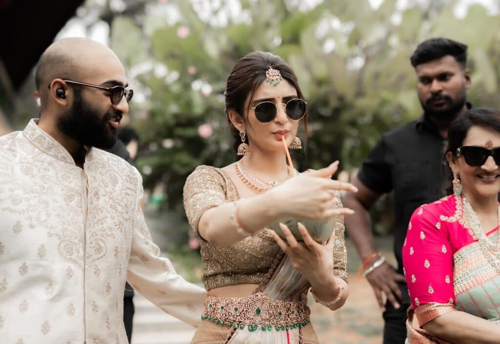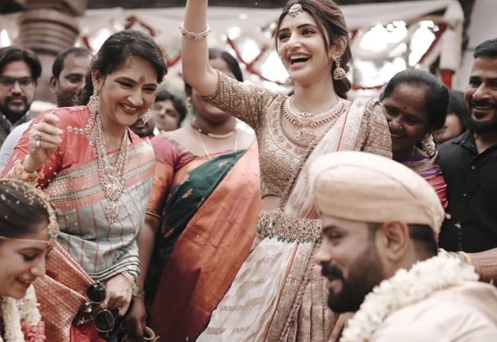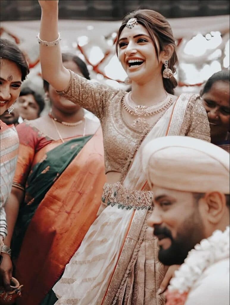 Actress Sreeleela has been in the news lately for her recent viral post as well as her upcoming movies. As she posted photos from a family wedding, her radiant smile and easy charm drew everyone in. She looked stunning in a white lehenga, a gold-embroidered blouse, and a lot of jewelry, exuding festive elegance.