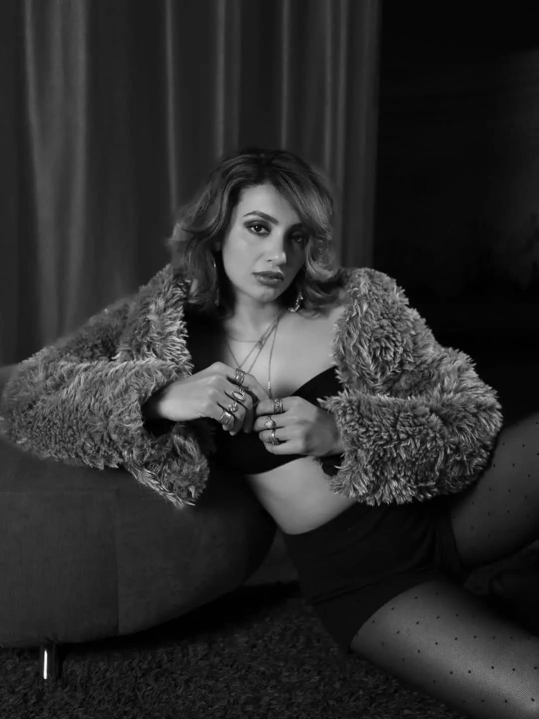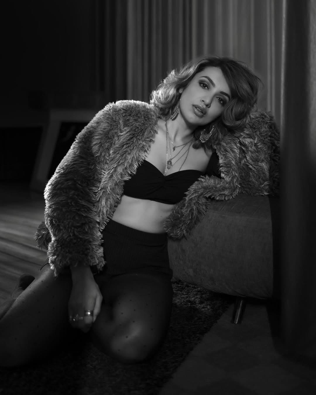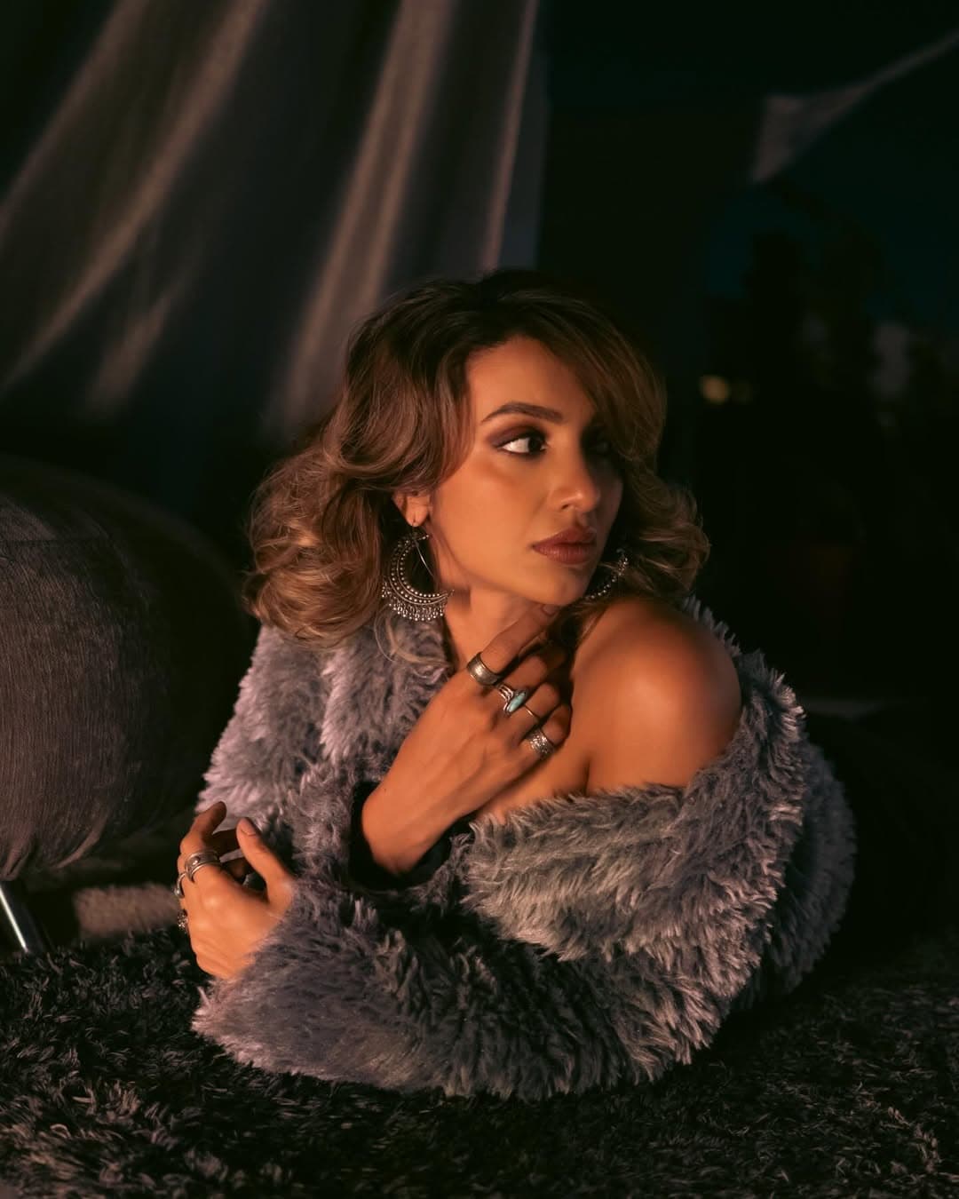 Tejaswi Madivada looked stunning in a black strapless dress, effortlessly highlighting her graceful silhouette. She paired the form-fitting outfit with a grey faux-fur jacket, creating a distinctive charm for her modern chic look.